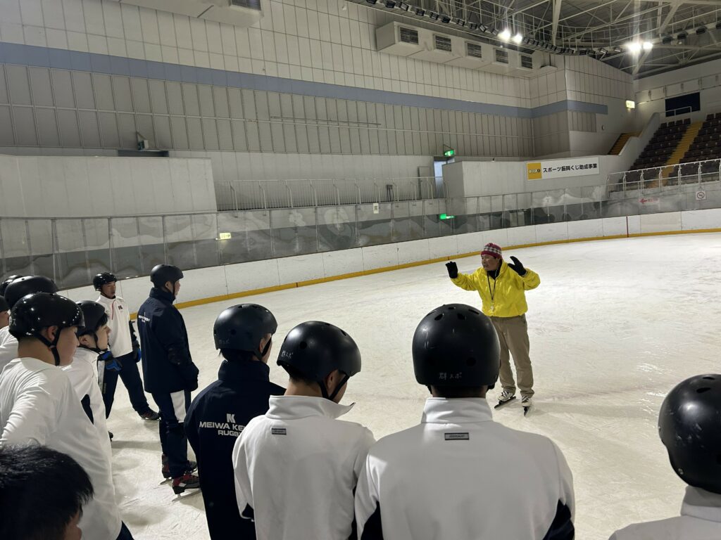 2月4日(水)、ALSOKぐんまアイスアリーナにおいて1学年競技スポーツコースの生徒を対象に、ウインタースポーツ体験教室(スケート)を実施しました。インストラクターの方々から丁寧に指導していただき、楽しい時間を過ごすことができました。